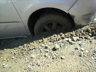 と、いうのも本来車で来ちゃダメだというのに、参加者が多かったんでそこを無視して車でぶっちぎた所、、、ハマ(T-T)