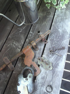 正直、コレ探すの一番大変だったカモ。。。入り口ルーバーシャッターの鍵。この間、心斎橋でオープンしたイウ゛ェントスペースの会場の雰囲気がど真ん中で、そこで使われてた鍵を見て一目惚れ。ワザワザ問い合わせてやっと見つけたアンティークカンヌキ&南京錠。。LOVE(*≧m≦*)大工さんは「一生懸命探してコレですか」みたいな感じだったけど。いーの。腹満腹。。。