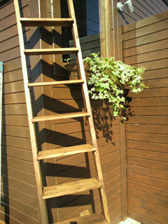 アタシの階段(*´∇`*)上の方の荷物を取るのに、大工さんにお願いして、木の階段造ってもらったよ♪