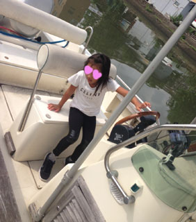 学校帰りに、お店横に停泊してるボートに乗せてもらいました☆