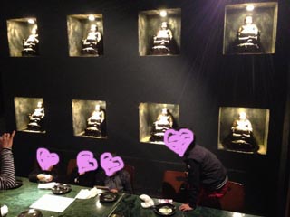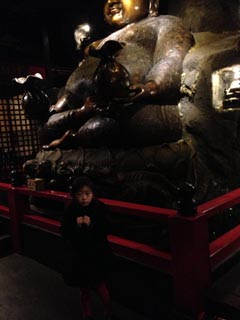 店内に大っきな大仏様がいて、ハニさんビビってるwww