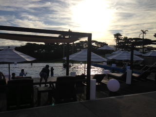 泣きわめいて、プールへ移動ー。