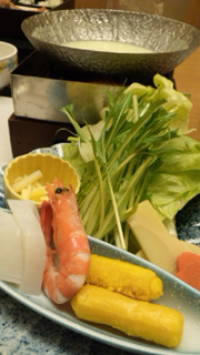 アタシは、お肉食べれないので、懐石をお願いしたんだけど、コースの中に小鍋が付いてて、ゴマだれ頼んで、一人しゃぶしゃぶー♪