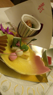 全てのお料理に、寿やら、鶴やらが付いてきて、お正月気分ー。