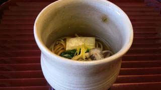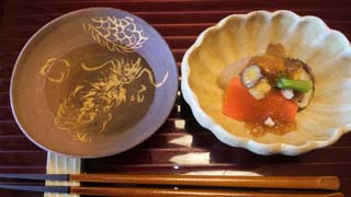 残り1ヶ月の大将手作り辰年のお猪口で先付け頂きます♪