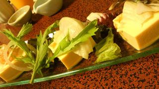私は、雲丹豆腐&チーズフライ、季節のサラダを頂きました。