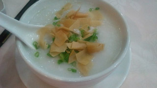 夜食に貝柱のお粥食べたよ。