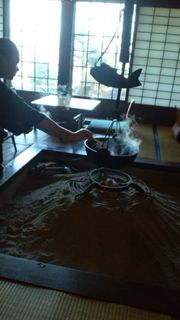 囲炉裏で頂く、アッツ熱のお味噌汁は、贅沢〜♪