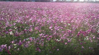 吃驚するぐらいの一面のコスモス畑に遭遇。