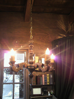 お次は、、お気に入りの木製シャンデリアのお色直し。