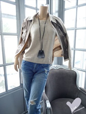 04A レザートリミングニット |